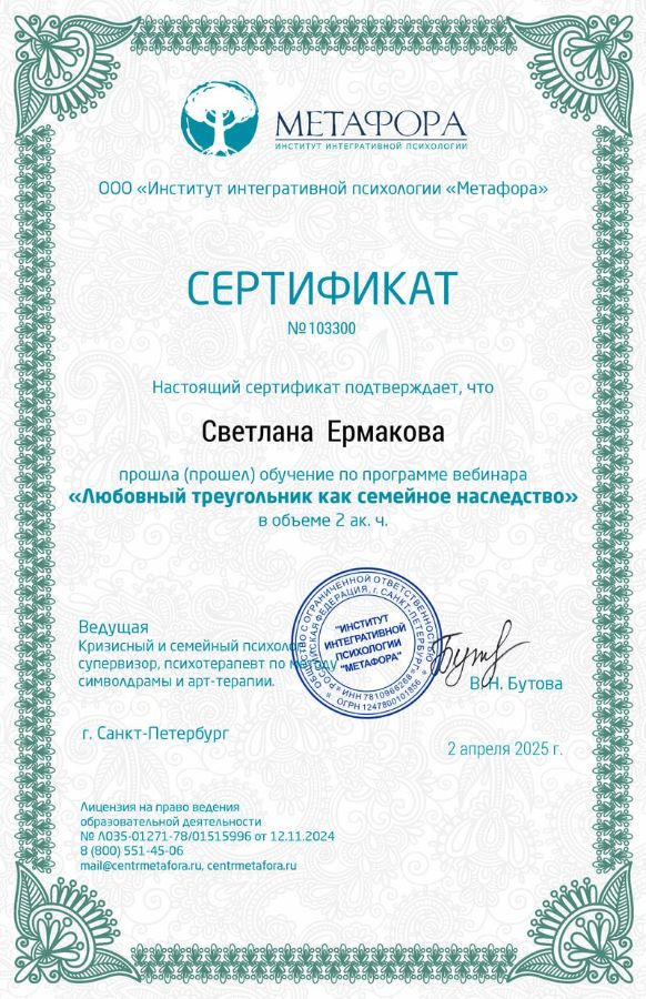 Индивидуальный подход! Вы описываете симптомы, а я помогаю найти первоисточник, убеждение, формирующее ваши эмоции и мысли — корень проблемы.