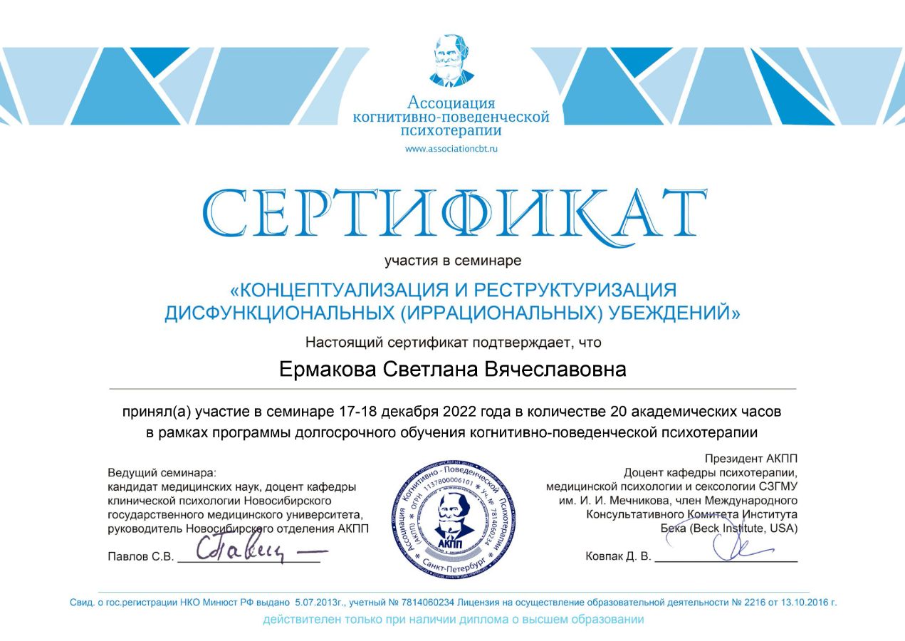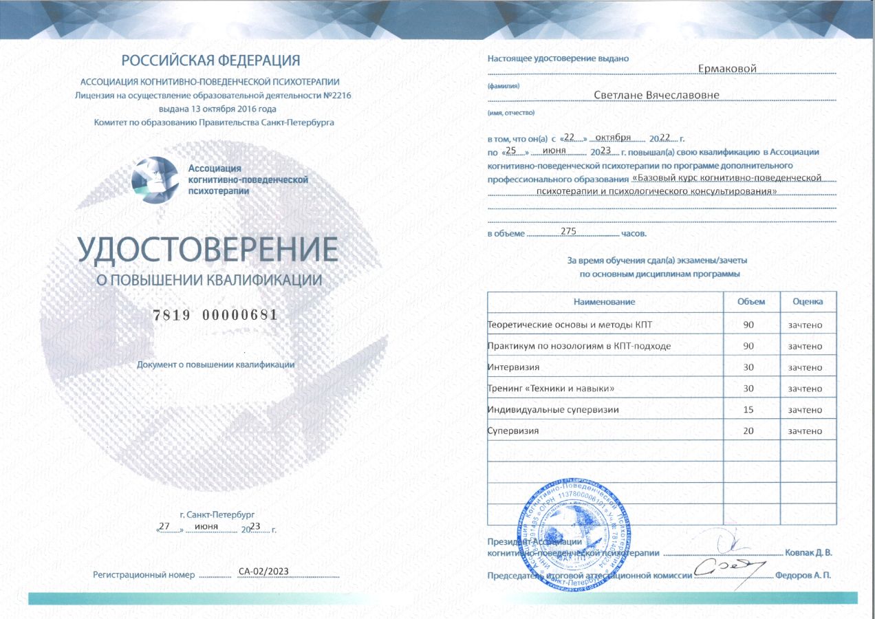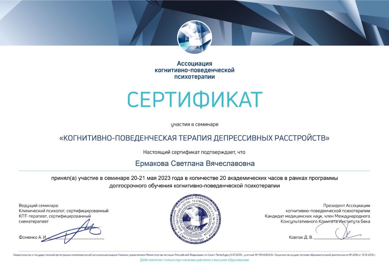 «Ассоциация когнитивно-поведенческой психотерапии» (АКПП) (275 часов)